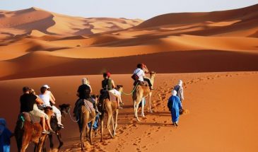 Ensuite, vous longerez cette vallée jusqu'à Tansikht, où vous pourrez découvrir des kasbahs et des villages typiques le long de la vallée du Draa jusqu'à Zagora. De là, vous profiterez d'une randonnée d’une heure à dos de chameau avec votre guide pour rejoindre l'authentique campement du désert de Tizi. Au dîner, vous dégusterez un repas traditionnel avec du thé marocain à la menthe, puis passerez la nuit dans votre tente.